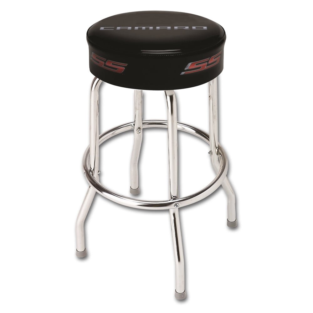 A classic look for either the home or shop. The New Camaro Stool has a 14" wide vinyl swivel seat and features the new Camaro emblem and SS Logos. Sturdy, comfortable and good-looking, these stools feature chrome legs.