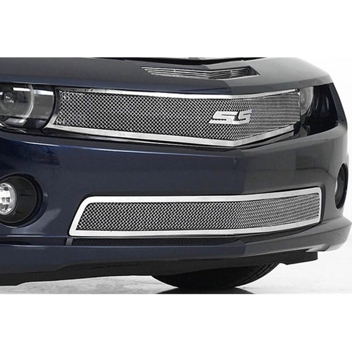 Chevy Camaro 2010-2013, Upper Class Custom Style Polished Mesh Grille by T-Rex®. T-Rex creates their mesh grilles with same level of precision design, craftsmanship, quality materials and advanced manufacturing techniques as the world’s best automakers, to deliver you a product with unparalleled luxury and style. Constructed from 304 stainless steel, this grille features exclusive full formed woven mesh that stands out from the sturdy 12-gauge frame for a 3-dimensional appearance that can’t be matched by competitor’s flat mesh grilles.