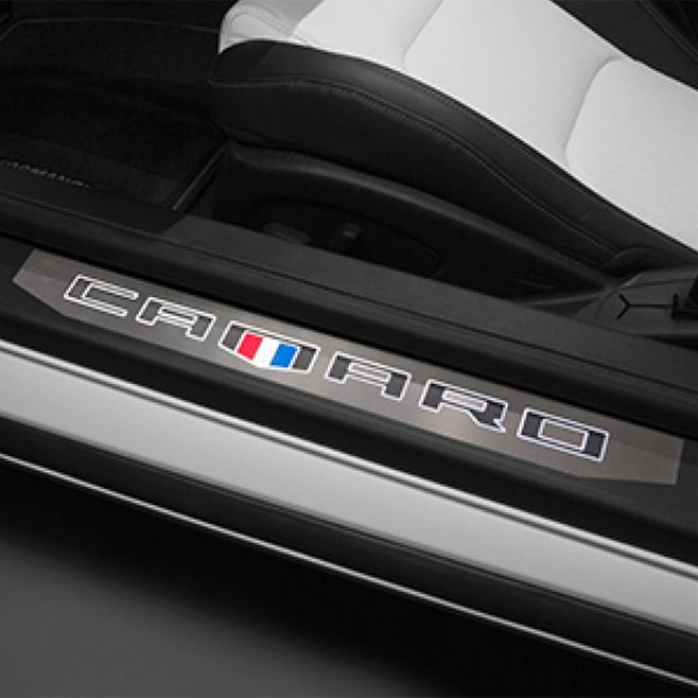 Enhance your vehicle’s appearance with these easy-to-install Chevrolet Accessories Door Sill Plates. They provide an attractive accent to the front door sills while protecting them from scuffs and scrapes and feature the Camaro script. Stylish soft lighting illuminates when a door is opened and turns off when the door is shut.