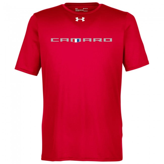 Rock this red tee and step up your game! Enjoy ultra-soft, quick-drying and anti-odor technology plus a four-way stretch for sleek mobility. Show off the Camaro Signature logo across the chest and top center chest & back Under Armour® logos. 100% polyester, imported.