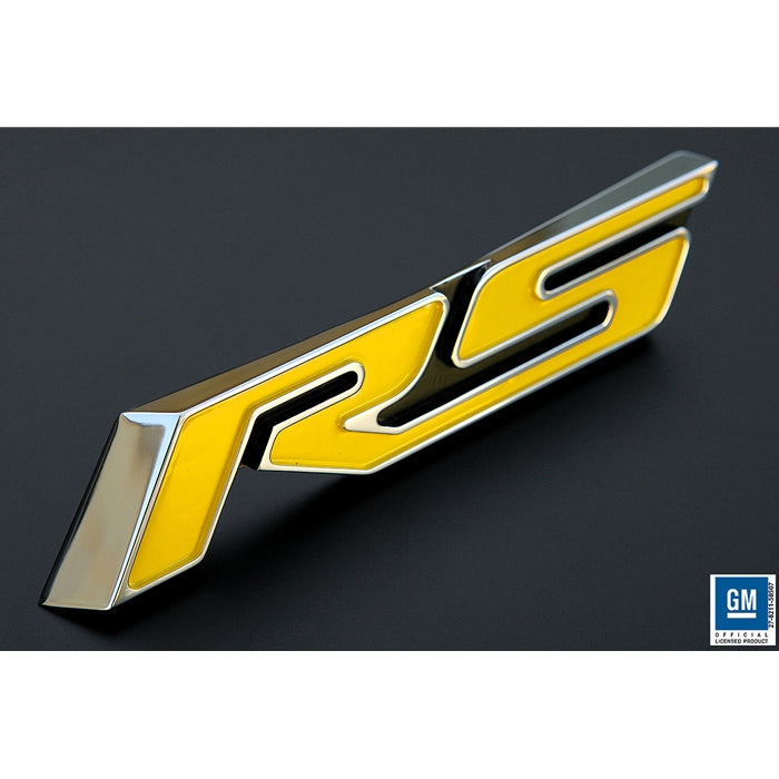2010-15 Camaro Trunk Emblem - Yellow RS with Polished Outer