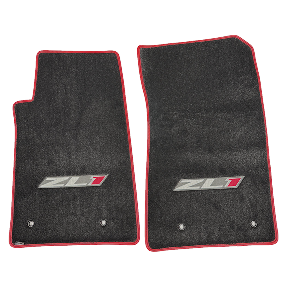Final Sale: All Clearance, Open Box & Used Parts are final sale items. No returns, refunds or exchanges.Camaro Ultimat Floor Mats 2 Pc. Set : Red Binding, Black Stitching - ZL1 Logo