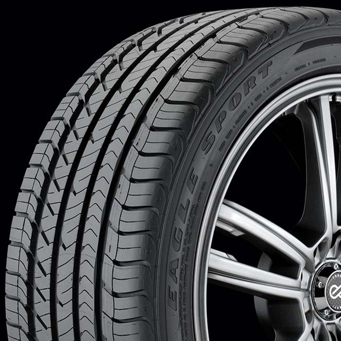 The Eagle Sport All-Season features an innovative all-season tread compound molded into a large surface tread contact area asymmetric design to offer consistent performance across a broad range of vehicles. Linked outboard shoulder blocks backed by notched center ribs and connected inboard shoulder blocks enhance steering response, handling and wear. Circumferential grooves help evacuate water to increase traction in wet weather, while full-depth sipes preserve foul-weather traction as the tire wears.