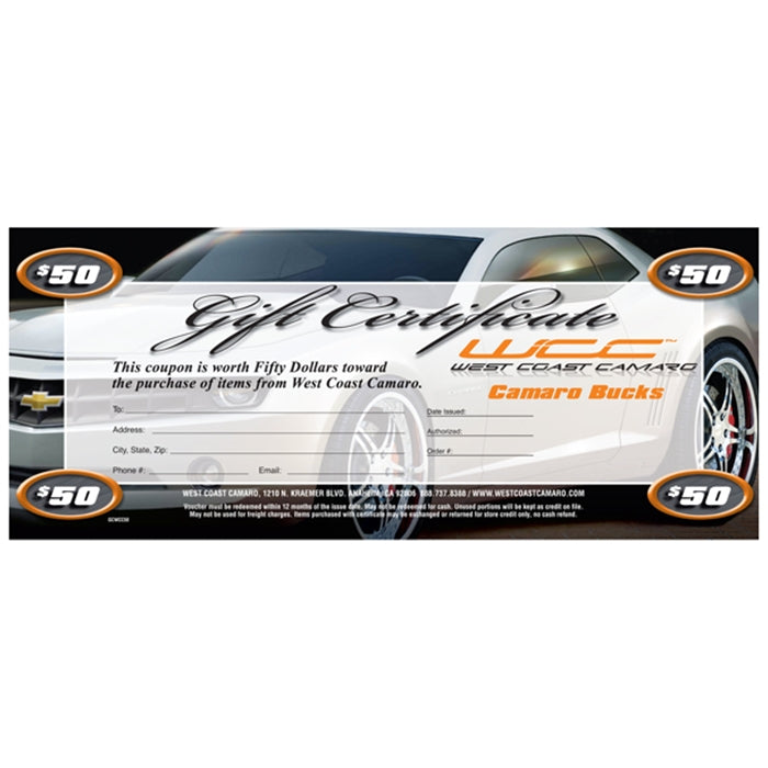 West Coast Camaro - 50 Dollar Gift Certificate